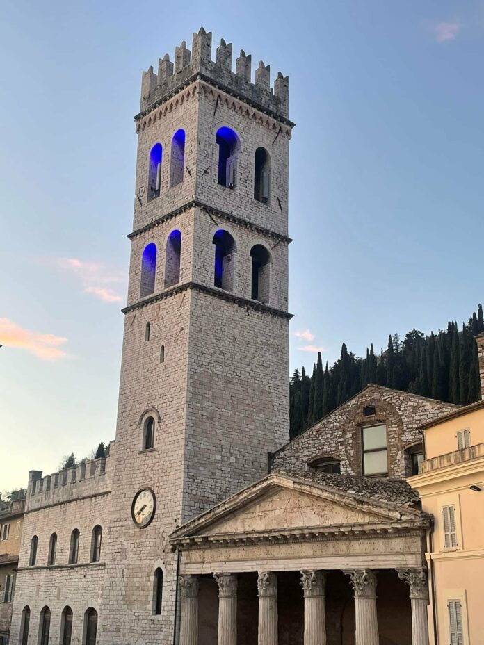 Giornata mondiale del Parkinson, la Torre del Popolo di Assisi illuminata di blu