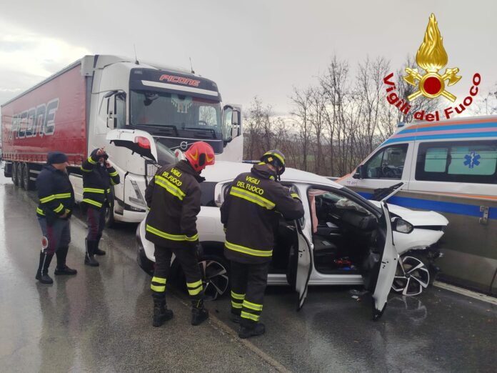 Per cause in corso di accertamento, un’auto si è scontrata con un camion. L’autista dell’auto è rimasto incastrato nell’abitacolo ed è stato estratto dalla squadra dei vigili del fuoco della centrale, che lo ha poi affidato alle cure dei sanitari. Le sue condizioni sono state giudicate gravi.
