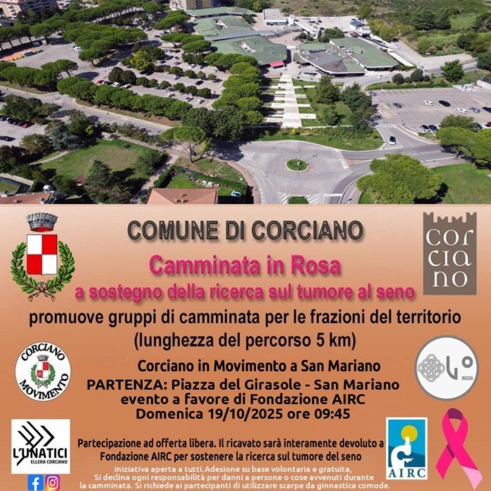 Appuntamento speciale per “Corciano in movimento”, format del Comune di Corciano per promuovere la coesione sociale e la partecipazione tramite lo sport e le attività all’aria aperta, che, in occasione del mese di prevenzione della Fondazione Airc e della campagna di mobilitazione internazionale contro il tumore al seno Nastro Rosa, propone una “Camminata in rosa“.