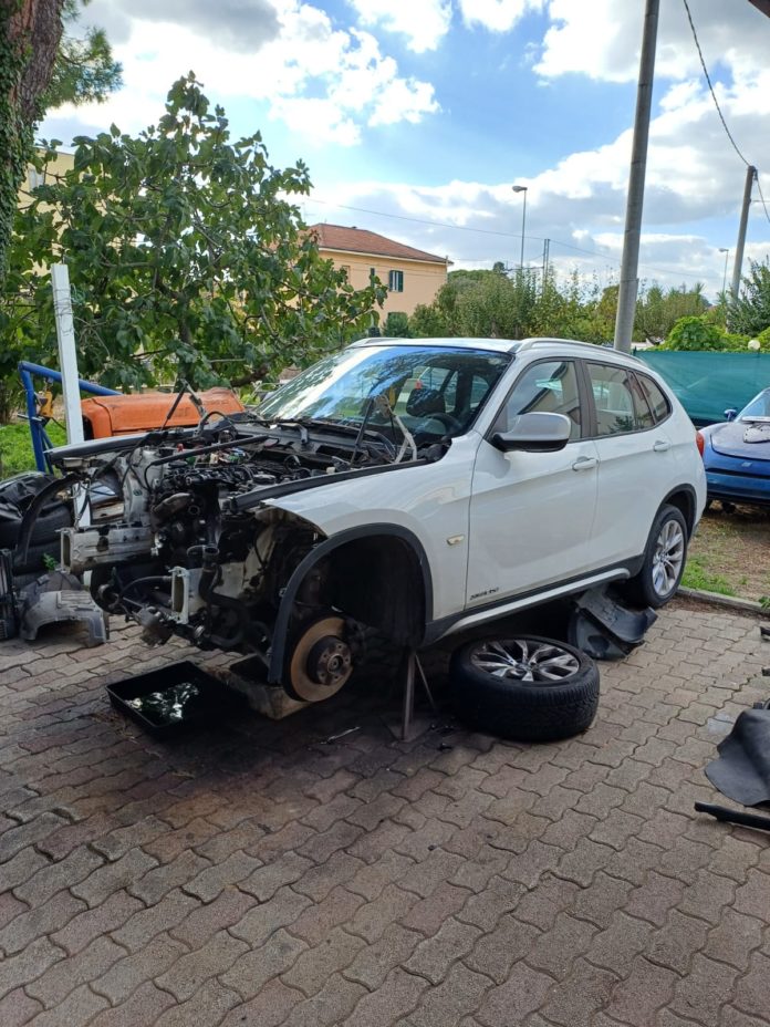 Nel corso del controllo, infatti, è stato identificato il trasgressore, uomo di 26 anni residente a Foligno intento nell’attività di montaggio e smontaggio di un veicolo. Nel garage sono stati trovati molti veicoli privi di parte meccaniche e attrezzature professionali come: un sollevatore manuale idraulico, un carrello/cassettiera porta attrezzi, una scatola di chiavi inglesi, due saldatrici (una a filo una ad elettrodi) e un cavalletto porta motore.