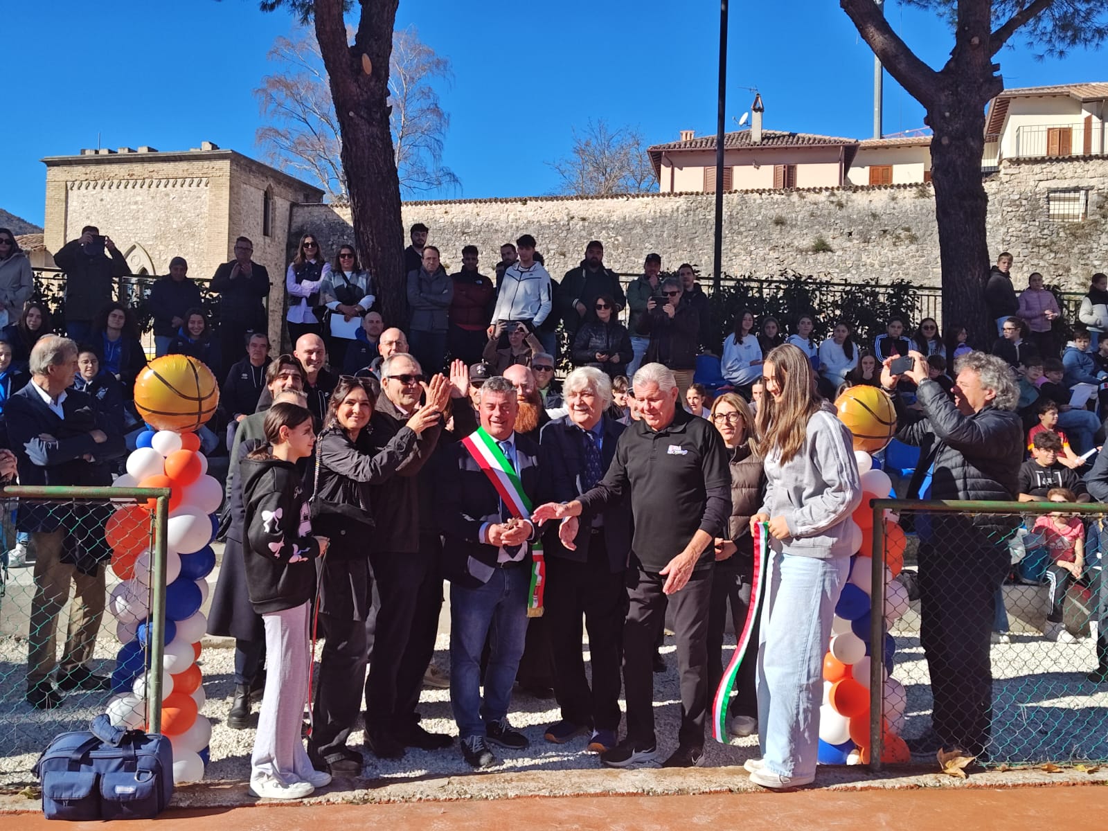 Un gesto d’amore e di solidarietà. Un aiuto giunto a Norcia d’oltreoceano, a seguito del sisma  che nel 2016 ha duramente colpito i luoghi e le persone. È nato da tutto questo il progetto che ha permesso di realizzare il campo da basket comunale, inaugurato mercoledì 5 novembre e da questo momento a disposizione dell’interna comunità nursina e, in particolare, dei giovani. Al taglio del nastro hanno partecipato il sindaco Giuliano Boccanera e gli assessori comunali Antonio Duca, Maria Anna Stella e Sabrina Palazzeschi, il consigliere comunale Ilario Salvatori, Robert J. Delaney ex arbitro Nba e vicepresidente Nba- Care, Giampiero Rosati, direttore dell’Italian national trauma center (Intc) che ha sede a Orvieto, e Richard Mollica, professore di Psichiatria alla Harvard Medical School. Erano presenti inoltre don Davide Tononi, parroco di Norcia, e don Agostino in rappresentanza dei monaci dell’Abbazia di San Benedetto al Monte. Il campo da basket donato al Comune di Norcia è stato realizzato dall’Intc con fondi Niaf (National italian america foundation) insieme all’Nba Care.