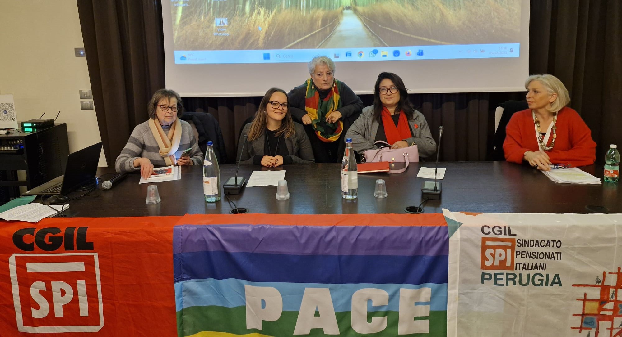 Molto partecipata l’iniziativa promossa a Santa Maria degli Angeli, ad Assisi, venerdì 5 dicembre dal coordinamento donne Lega Spi-Cgil Assisi Bastia Bettona Cannara Valfabbrica sull’attualissimo tema delle guerra e della violenza di genere. L’incontro è stato aperto da Silvana Lavelli, coordinatrice donne della Lega Spi, che lo ha organizzato, e concluso dalla segretaria nazionale Claudia Carlino che ha sottolineato l’importanza e la rilevanza dell’iniziativa. Molto interessanti i contributi nel dibattito della coordinatrice provinciale donne spi Perugia Rossella Casciarri, di Giulia Cirica di Arcisolidarietà che ha illustrato il Progetto Cas (centro accoglienza straordinaria nel territorio), della rappresentante di Emergency Simonetta Lumediluna, di Shady Akizadeh avvocata italo iraniana, attivista per il riconoscimento dei diritti delle donne, di Francesca Gianformaggio della Casa dei popoli di Foligno. Molto emozionante anche l’esibizione ‘Nella notte ci guidano le stelle’ del coro Anpi Cgil Perugia. La coordinatrice Silvana Lavelli, nel ringraziare i presenti al dibattito, ha preannunciato prossime iniziative di sensibilizzazione e approfondimento sulla violenza di genere.
