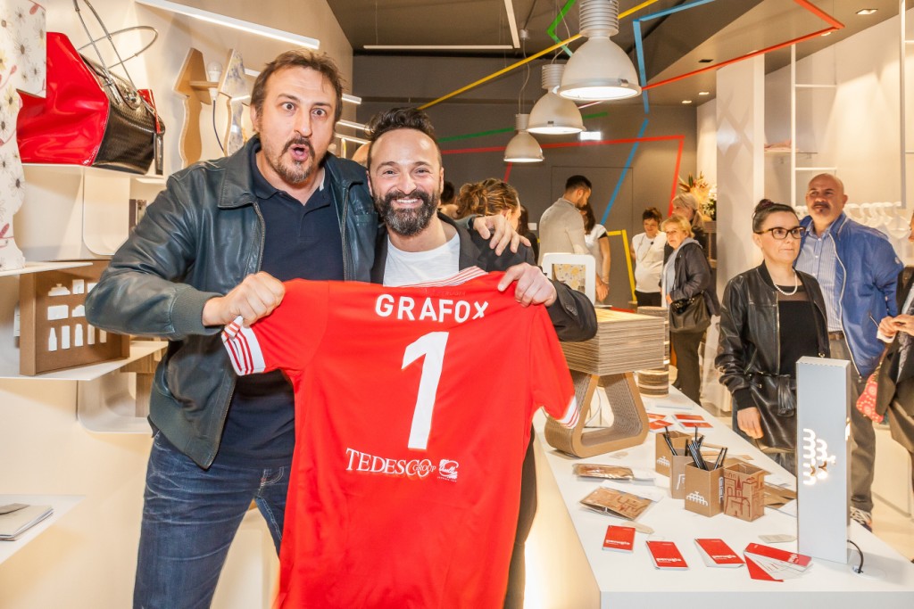 “Nel nostro negozio – spiega Andrea Lupattelli, uno dei soci fondatori di Grafox – si possono trovare tutti oggetti originali, sviluppati al 90 per cento all’interno della nostra azienda. Sono fatti tutti in cartone, legno e plexiglass. Tutto materiale riciclato, anche per quanto riguarda l’abbigliamento. Ma non solo. Sarà un contenitore di idee design. Ci sarà uno sviluppo anche per i ragazzi che studiano facoltà come architettura. Noi gli svilupperemo i prototipi e se l’idea è carina la metteremo in vendita e prepareremo delle ‘royalty’, quindi stimoleremo anche i giovani a creare qualche cosa”.