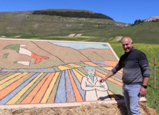 Da Castelluccio di Norcia un omaggio a medici e infermieri. Gianni Coccia: "Abbiamo voluto realizzare con la lenticchia e altri legumi di questa terra un paesaggio che rappresenta Castelluccio e una dottoressa"