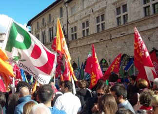 Una piazza Matteotti piena di lavoratori e cittadini per difendere i 364 esuberi della Perugina annunciati...