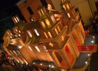 Raffigura il Duomo di Spoleto, quest'anno, il cosiddetto "Dolcione", la gigantesca scultura realizzata con farina, uova, burro, zucchero e bignè, protagonista della Sagra del bigné a Orentano, nel comune di Castelfranco di Sotto (Pisa),...