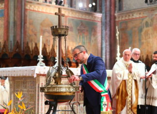 Il sindaco di L'Aquila ha acceso la Lampada votiva dei Comuni d'Italia