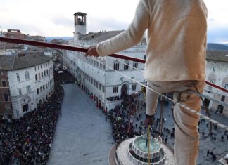 Perugia: l’8 dicembre il funambolo camminerà di nuovo sopra piazza IV Novembre