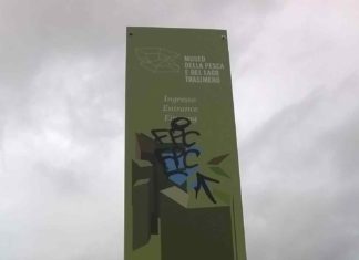 Graffiti e scritte danneggiano l’insegna del Museo della pesca. Il danno colpisce di nuovo uno dei luoghi simbolo della cultura lacustre