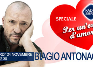 Biagio Antonacci nella notte di Radio Subasio. L'appuntamento con il cantante è domani, 24 novembre, nella prima parte di "Per un'ora d'amore"