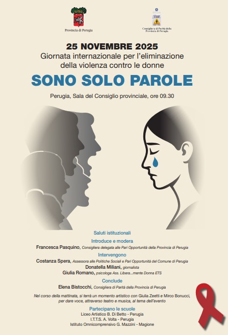 La prima iniziativa sarà dedicata alle studentesse e agli studenti delle scuole superiori (Liceo Artistico B. Di Betto di Perugia, I.T.T.S. A. Volta di Perugia e Istituto Omnicomprensivo G. Mazzini – Magione). Nel corso della mattinata verrà avviato il percorso educativo “Sono solo parole”, un progetto che punta a sensibilizzare le nuove generazioni sul tema della violenza di genere, partendo da un elemento spesso sottovalutato ma fondamentale: il linguaggio. Durante l’iniziativa sarà presentato nel dettaglio il progetto e le sue fasi operative, che coinvolgeranno gli istituti del territorio nei prossimi mesi.