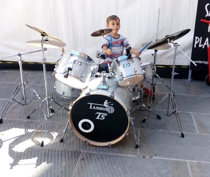 Arturo Cucciolla farà sei anni ad agosto e in un’assolata domenica di luglio come fosse uno dei regali del prossimo compleanno “costringe” mamma Claudia e papà Luca a caricare lo strumento preferito in auto ed andare in centro ad umbria Jazz.