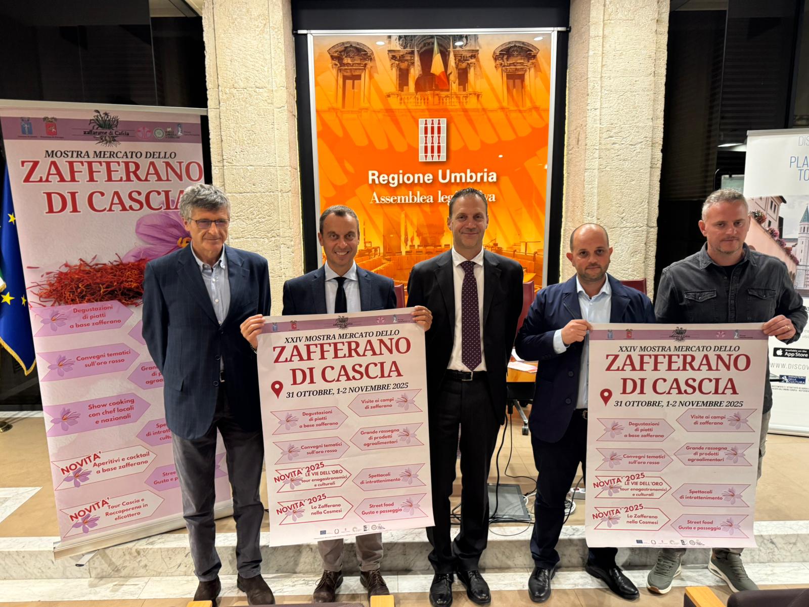 È stata presentata venerdì 24 ottobre, nella sala della Partecipazione di Palazzo Cesaroni a Perugia, la XXIV Mostra mercato dello zafferano di Cascia, in programma da venerdì 31 ottobre a domenica 2 novembre 2025. Un appuntamento che, anno dopo anno, continua a rappresentare un punto di riferimento per la promozione delle eccellenze umbre e per la valorizzazione di un prodotto simbolo del territorio: lo zafferano purissimo di Cascia.