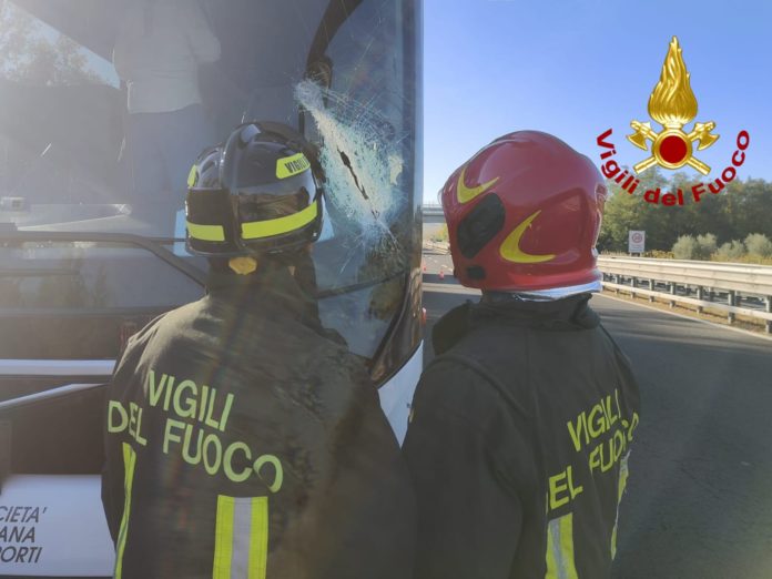 Questa mattina, intorno alle ore 9:10, i Vigili del Fuoco di Orvieto sono intervenuti sull’autostrada A1, direzione nord, circa 10 km prima dello svincolo di Fabro, nei pressi dell’area di parcheggio Ritorto, a seguito di un incidente che ha coinvolto un autobus turistico con a bordo un gruppo di cittadini statunitensi in viaggio da Orvieto verso Siena.