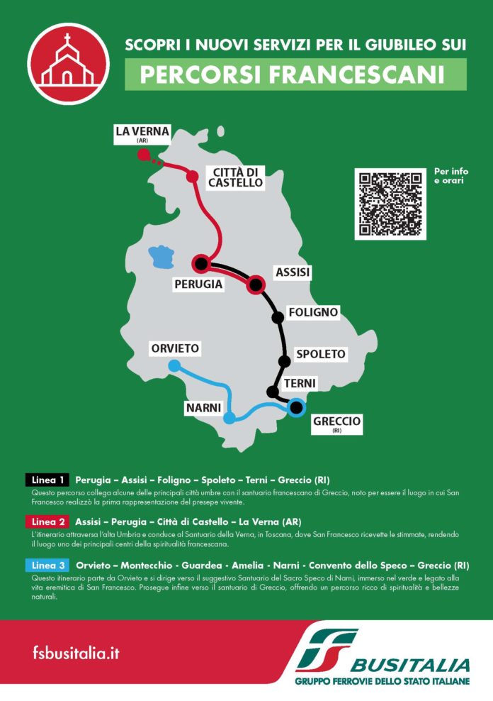 In occasione dell’anno giubilare e alla vigilia dell’anno che sarà caratterizzato dalle celebrazioni per gli 800 anni dalla morte di San Francesco, l’Umbria si conferma cuore pulsante della spiritualità francescana e della mobilità sostenibile. Grazie alla collaborazione tra Regione e Busitalia, da domani, 4 ottobre, saranno operative tre nuove linee sperimentali dedicate ai luoghi simbolo della vita di San Francesco, con l’obiettivo di promuovere un turismo lento, rispettoso e inclusivo.