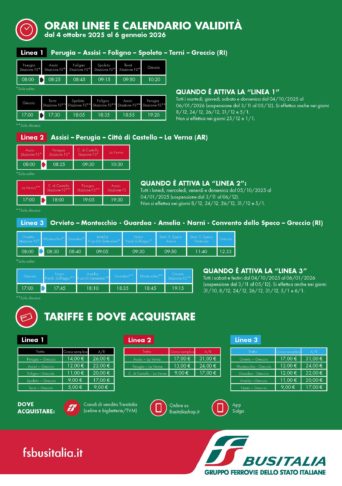 I biglietti per le nuove linee che consentono di raggiungere in modo semplice e diretto alcuni tra i principali santuari francescani, saranno disponibili su tutti i canali Trenitalia, sul sito Busitaliashop.it e tramite l’app Salgo. I collegamenti saranno attivi fino al 6 gennaio 2026, secondo un calendario dedicato che includerà anche i giorni festivi.