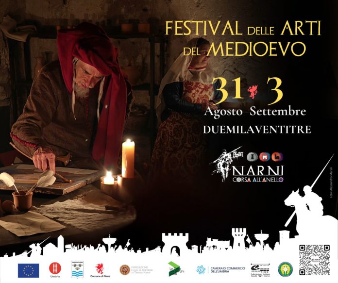 Torna anche quest’anno Il Festival delle Arti del Medioevo che arriverà ad animare il centro storico della città di Narni, sotto il filo conduttore “Storie dall’acqua e dalla terra”, dal 31 agosto al 3 settembre con un programma ricco e articolato. Un’occasione unica per rivivere il Medioevo nel cuore dell’Umbria tra conferenze, mercato di arti e mestieri, spettacoli, tra i quali il suggestivo “Cantica Nova”, musica, workshop di sartoria storica, teatro medievale, danza medievale e cornamusa (iscrizioni a breve sul sito della Corsa all’Anello), quadri scenici trecenteschi per rivivere l’atmosfera degli ambienti animati dell’epoca, tra le proposte più accattivanti della kermesse. Non mancheranno le tipiche osterie dei Terzieri che riapriranno per l’occasione, i banchetti medievali e degustazioni a tema.