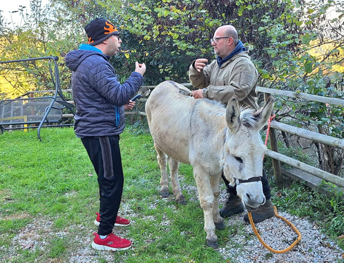Quando facciamo Pet therapy con le persone in generale e in particolare con chi ha problemi cognitivi, a noi non interessa la malattia, ma ci preoccupiamo di accogliere le loro esigenze. E l’asino, noto per la sua pazienza, il passo lento e la personalità affettuosa, è un animale che riesce a creare un ambiente rassicurante per le persone speciali. Oltre al fatto, non trascurabile, che inclusività vuol dire accogliere senza giudicare”. Lo sostiene Claudio Baldelli, esperto in Interventi assisiti con gli asini e titolare insieme alla moglie, Eleonora Fabbroni, del primo centro regionale di Pet therapy, fattoria Baldo & Riccia di Perugia. Protagonista assoluto della fattoria è sicuramente l’asino, che grazie alla sua empatia, lo rende adatto alle attività terapeutiche, favorendo miglioramenti nella socializzazione, nell’autostima e nelle abilità cognitive delle persone coinvolte.