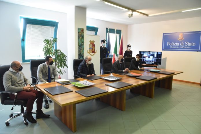 Presenti oltre a questore e sindaco anche l’assessore alla sicurezza Luca Merli, i consiglieri Massimo Pici (Perugia Civica) e Luca Valigi (Lega).