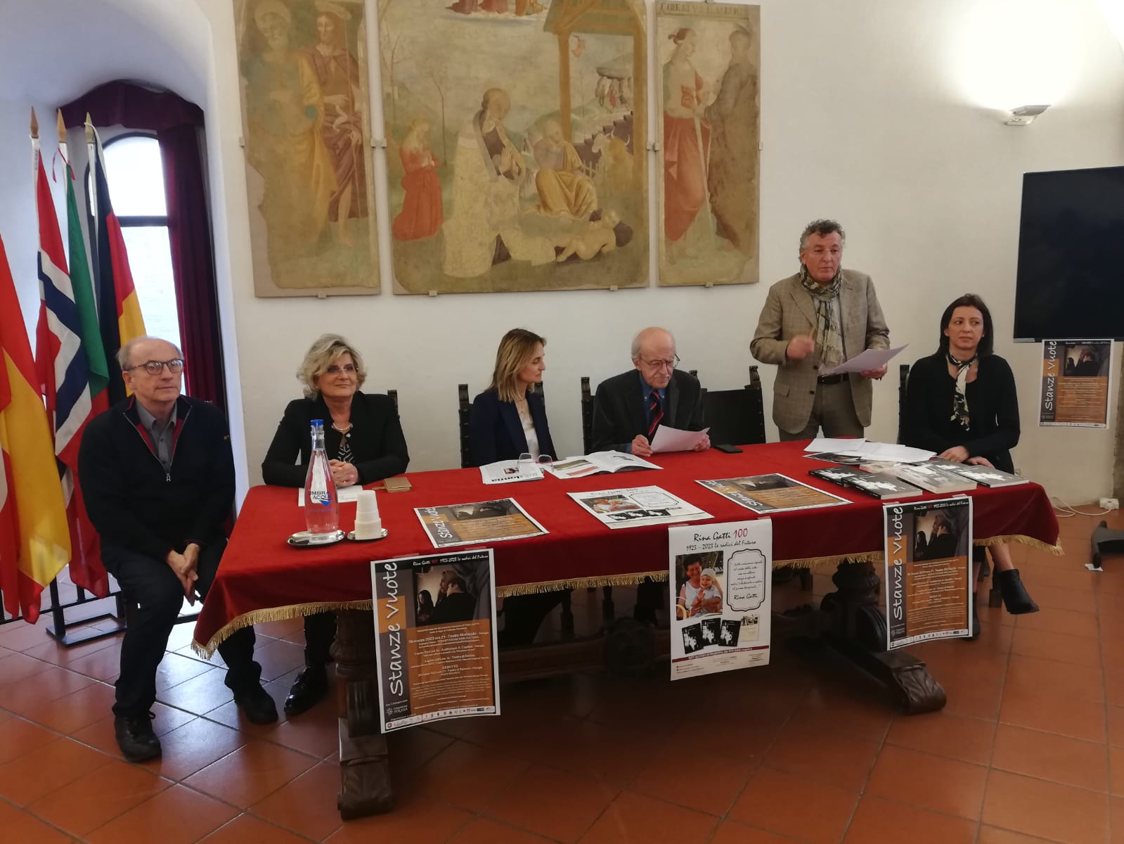 Con il sostegno della Fondazione Perugia e il patrocinio e il sostegno del Comune di Perugia, della Provincia di Perugia, del Comune di Torgiano e del Comune di Deruta, si realizzerà la messa in scena di uno spettacolo, interpretato dagli studenti dell’Istituto di Istruzione Superiore “Giordano Bruno” di Perugia, frutto di un laboratorio teatrale condotto dalla regista Caterina Fiocchetti. Il testo dello spettacolo, basato sul libro Stanze vuote di Rina Gatti, sarà rappresentato al Teatro Morlacchi di Perugia a beneficio della cittadinanza (il 30 marzo ore 21), all’Auditorium Capitini a beneficio degli studenti del Giordano Bruno (il 3 aprile ore 10) e al Teatro di Deruta a beneficio delle scuole di Torgiano-Bettona-Deruta, area di nascita della scrittrice e luoghi di ispirazione delle sue opere (il 4 aprile ore 10).