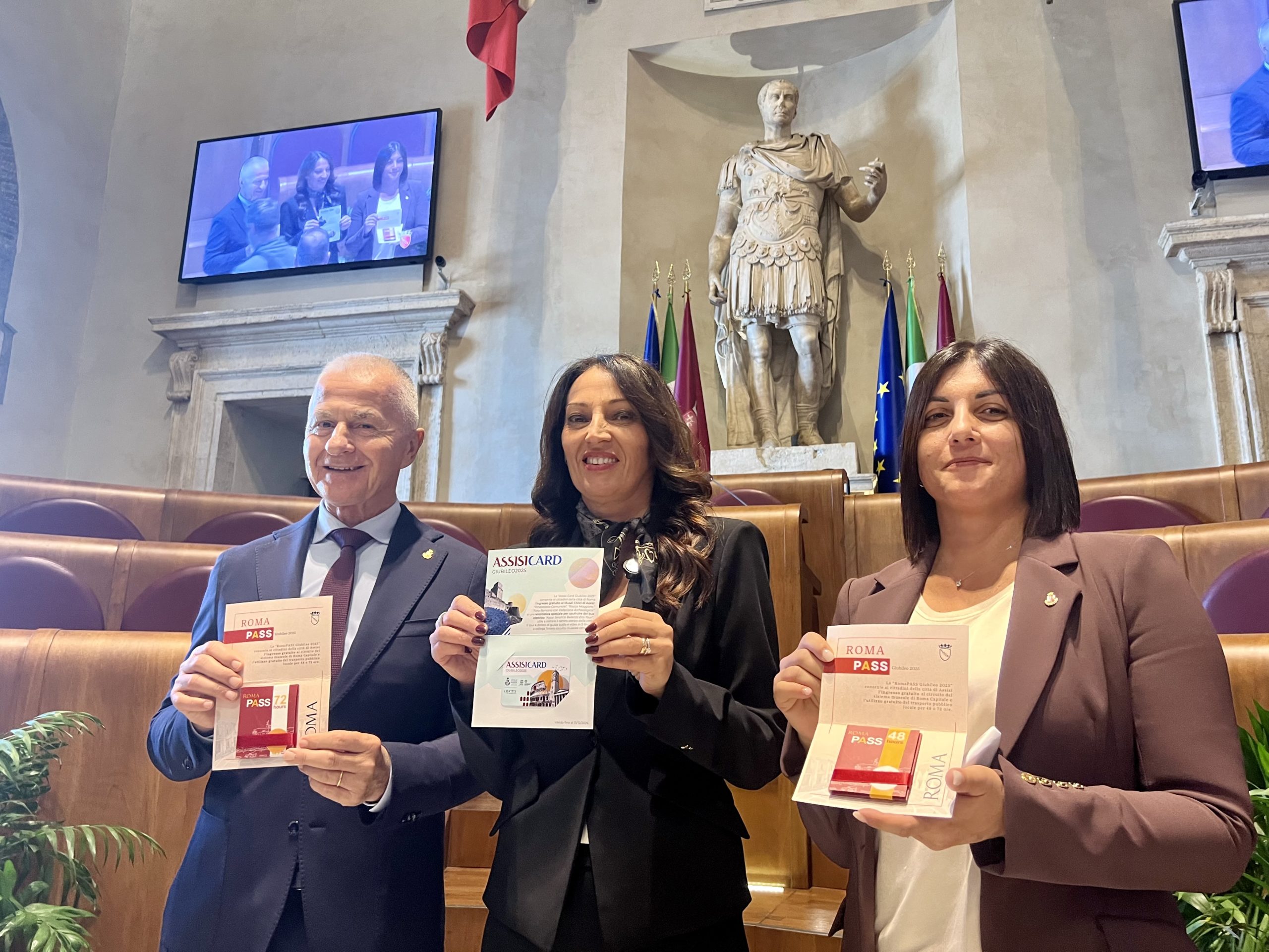 Nell’ambito dell’accordo “Insieme per il Giubileo”, Roma e Assisi hanno dato vita a un’iniziativa concreta di scambio turistico-culturale. Questa mattina, nell’aula “Giulio Cesare” in Campidoglio, Roma ha consegnato alla città di Assisi mille “Roma Pass”, mentre Assisi ha messo a disposizione dei cittadini della Capitale cinquecento “Assisi Card”. Consentiranno di accedere gratuitamente ai principali siti storico-artistici e a percorsi turistici dedicati. Si tratta della prima azione promossa a seguito dell’intesa firmata nella città serafica lo scorso 5 aprile.