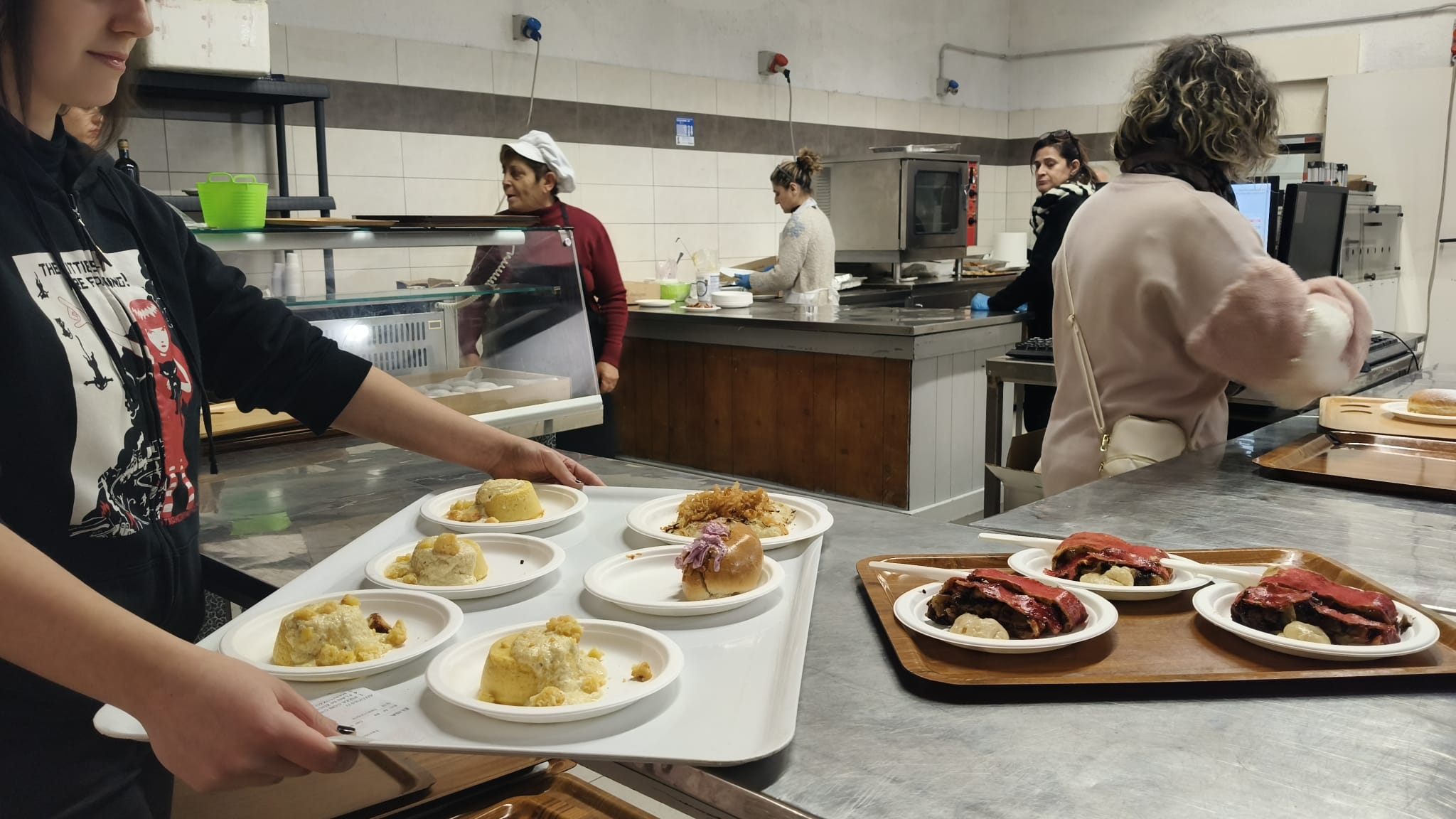 Monia Peri, vice presidente della Pro Avis Cannara, associazione di fund raising collegata alla Avis comunale di Cannara che organizza la Festa della cipolla winter edition, esprime soddisfazione, la sua e di tutti gli organizzatori, intervistata durante la seconda serata dell’evento, venerdì 5 dicembre; seppure ridimensionata rispetto all’edizione settembrina della Festa, la proposta culinaria non teme confronti e il divertimento è garantito ogni sera, fino all’8 dicembre, attraverso l’intrattenimento musicale all’esterno dello stand ‘Al Cortile antico’, dove vi sono anche i mercatini e un grande braciere acceso che scalda l’atmosfera. Nei locali interni riscaldati, poi, si possono gustare le pietanze preparate dallo chef Michele Pidone, ogni sera dalle 19.30 alle 22 e domenica 7 e lunedì 8 anche a pranzo, dalle 12.30. Dall’antipasto al dolce, tutto è pensato per far vivere al visitatore un’esperienza culinaria che esalta la tradizione: dalla pizza con cipolla fritta a quella con crema di pecorino, carciofi ripassati e guanciale croccante, al più ‘ricercato’ maritozzo salato con pulled pollo salsa allo yogurt e cipolle in osmosi per iniziare il pasto, passando poi per un primo classico come le pennette alla cipollara, ma anche una polenta cremosa al sugo di spuntature di maiale e salsicce o gli gnocchi di patate allo zafferano e tartufo; e poi ancora, come secondo, come non provare lo stracotto di vitello brasato con chutney di pere e cipolle o il filetto di maialino bardato con cipolle rosse caramellate, da accompagnare con un contorno di cipolle gratinate alle erbe o di parmigiana di cipolle e chiudendo con una cheese cake con confettura di marroni e cipolle o con il bombolone alla crema con cipolla caramellata. Questi sono solo alcuni dei piatti in menù, di cui c’è la versione ‘Gluten free’ oltre che ‘Bimbi’.