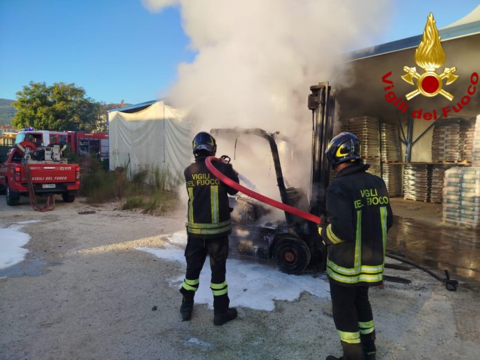 Intervento dei Vigili del fuoco poco prima delle 8 di sabato a Narni Scalo, presso una piccola azienda di rivendita di prodotti per l’agricoltura. Un muletto utilizzato per lo spostamento dei pallet ha preso fuoco autonomamente; il tempestivo intervento della squadra dei Vigili del fuoco di Terni ha impedito che le fiamme si propagassero al magazzino.
