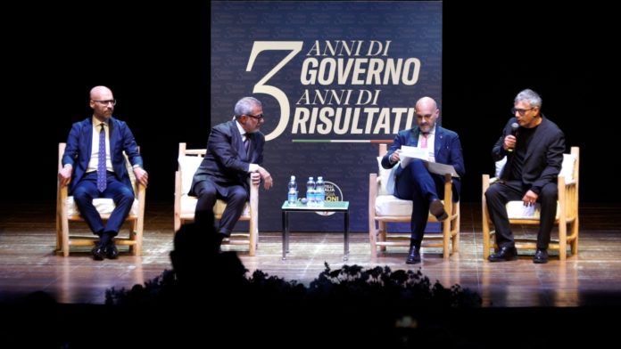 Tre anni di Governo Meloni, pienone al Teatro Brecht di Perugia: “Un’Italia che cresce, protegge e guarda al futuro”