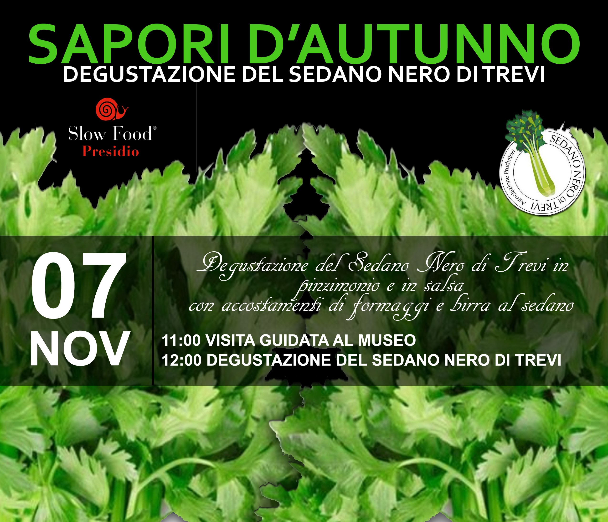 IL PROGRAMMA, ore 11:00 – Visita Guidata al Museo, ore 12:00 – Degustazione del Sedano Nero di Trevi