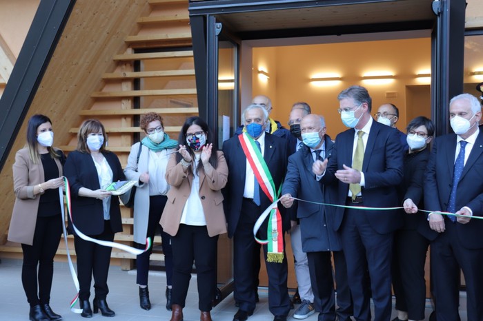 Taglio del nastro alla presenza anche del sottosegretario al ministero della Transizione ecologica, Ilaria Fontana e del commissario straordinario alla ricostruzione post sisma, Giovanni Legnini.