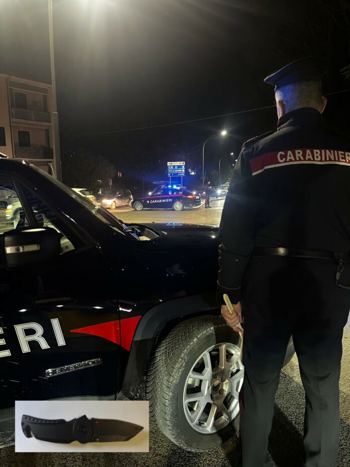 Durante la perquisizione personale lo stesso è stato trovato in possesso di un coltello, che è stato sottoposto a sequestro.