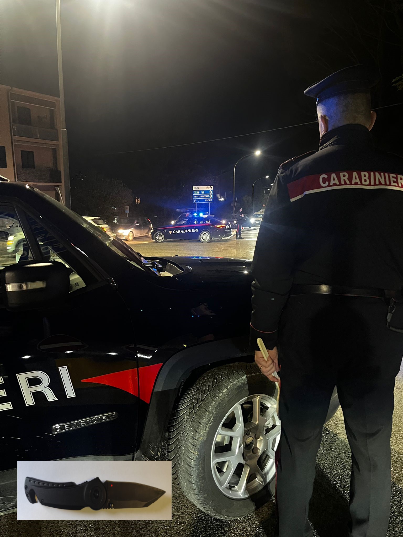 I Carabinieri dell’Aliquota Radiomobile della Compagnia di Todi (PG) hanno arrestato in flagranza di reato un 22enne, di nazionalità tunisina, in Italia senza fissa dimora, ritenuto responsabile di minaccia e resistenza a un pubblico ufficiale e porto abusivo di arma bianca.