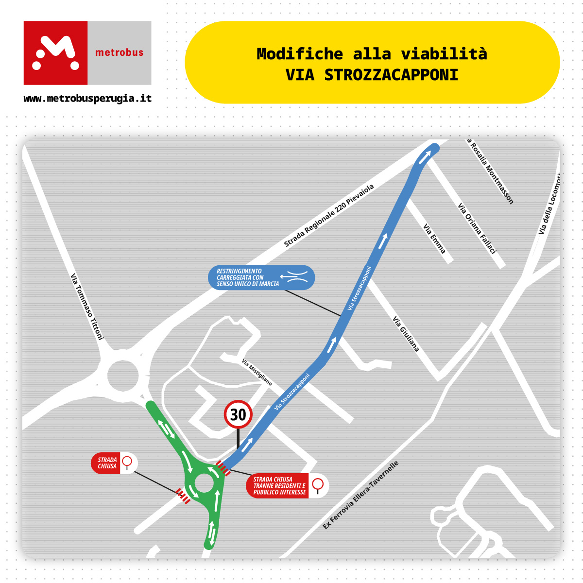 Al fine di consentire la prosecuzione dei lavori per la realizzazione del Metrobus nell’area di via Strozzacapponi, è stata adottata l’ordinanza n. 345 del 27 febbraio 2026 che prevede alcuni provvedimenti sulla circolazione.