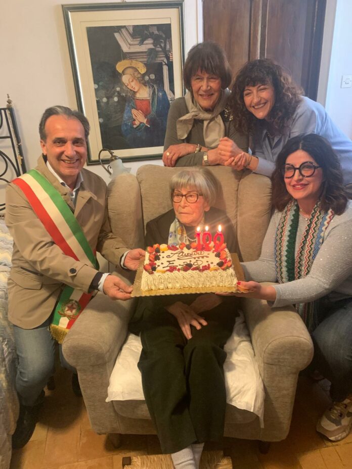 Spello, 16 aprile 2026– La comunità di Spello si è stretta con affetto attorno alla signora Elsa Palmieri, conosciuta da tutti con il nome di Ezia, che nei giorni scorsi ha tagliato il prestigioso traguardo dei cento anni. La signora Elsa ha celebrato questo momento speciale circondata dall’amore della figlia Claudia Petrucci e delle nipoti Benedetta e Carolina Boco. A porgere gli auguri a nome dell’Amministrazione Comunale e di tutta la cittadinanza è stato il sindaco Moreno Landrini, il quale, durante l’incontro, ha ricordato come “la signora Elsa rappresenti un dono per tutti noi: cent’anni di vita sono cent’anni di storia che appartengono all’intera comunità di Spello”. Alla festa hanno preso parte anche parenti e amici che, con il loro calore e la loro presenza affettuosa, hanno reso la giornata ancora più speciale. Spello rinnova i più sentiti auguri per questo eccezionale compleanno.