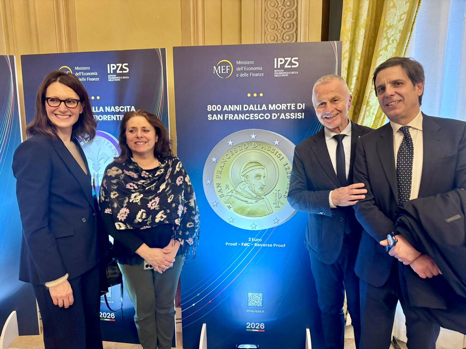 È entrata oggi in circolazione la moneta da 2 euro dedicata agli 800 anni dalla morte di San Francesco dAssisi, patrono dItalia e figura universale di pace e fraternità. Il Comune di Assisi accoglie con grande soddisfazione questo importante evento, che segna linizio delle emissioni numismatiche italiane dedicate al Santo nel quadro della Collezione Numismatica 2026, promossa dal Ministero dellEconomia e delle Finanze e realizzata dallIstituto Poligrafico e Zecca dello Stato. La moneta da 2 euro, il cui bozzetto è ispirato a un celebre affresco di Simone Martini, rappresenta un omaggio di altissimo valore simbolico e culturale alla figura del Santo d’Assisi.